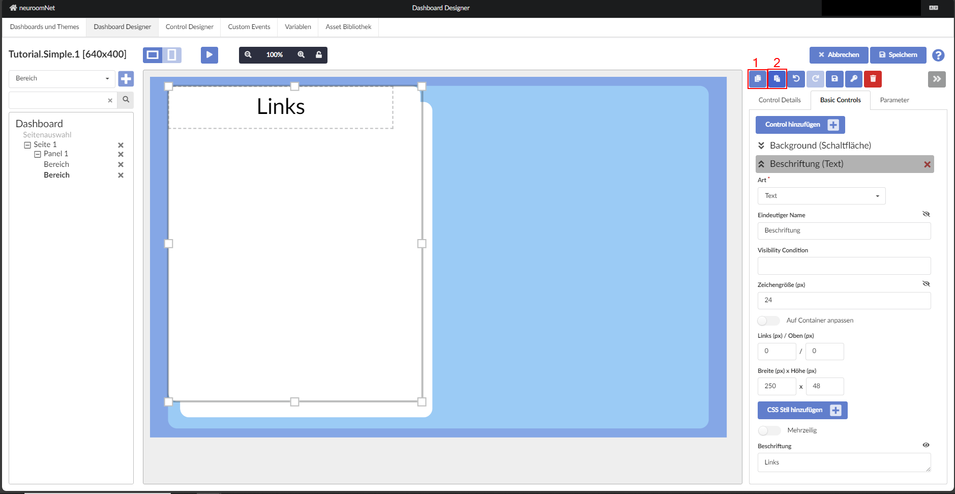 Tutorial-Schritt 1: Steuerseite und Bereiche anlegen